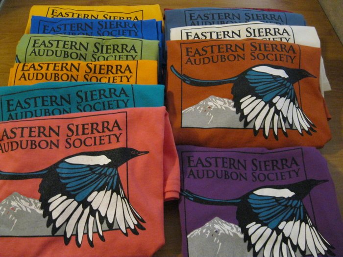 Proceeds go to ESBA for use in local conservation and education programs. The artwork is printed on 100% cotton high quality t-shirts. Shirts are available in a variety of sizes, styles, and colors. They may be viewed and purchased at Spellbinder Books on Main Street in Bishop.